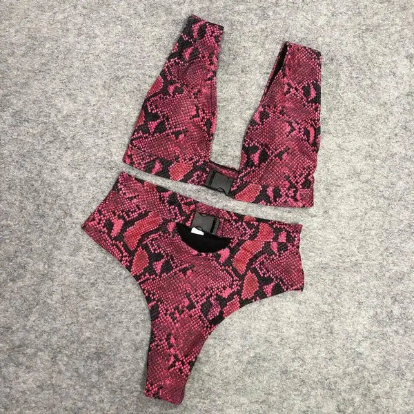 类型:比基尼泳装 印花:时尚蛇形印花设计风格影响:灵感源自欧美时尚潮流