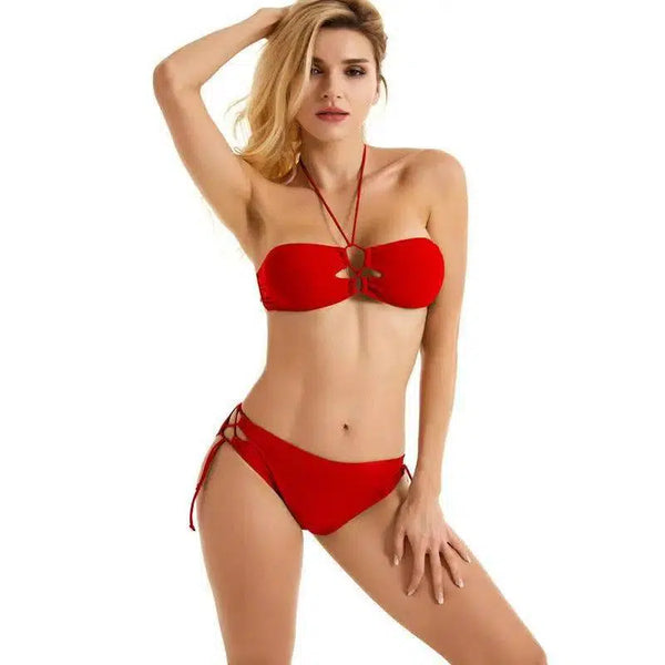 - 款式:三点式比基尼,融合欧美时尚元素。