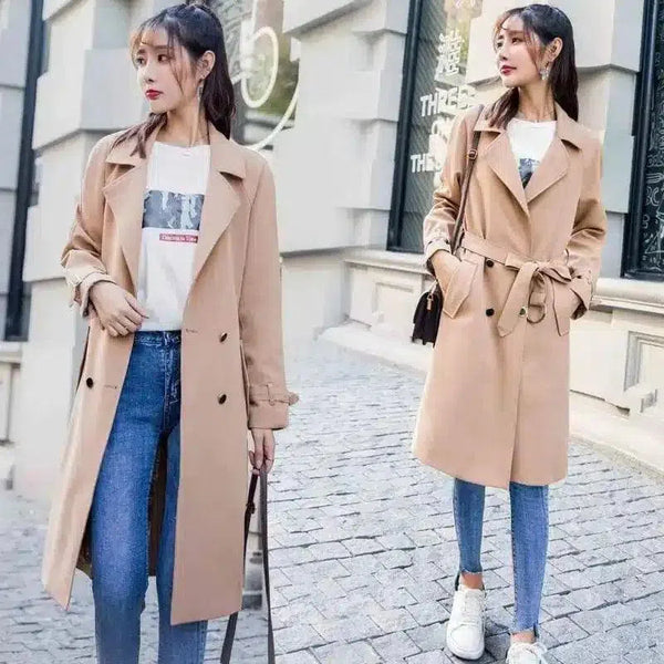 翻领束腰女式风衣