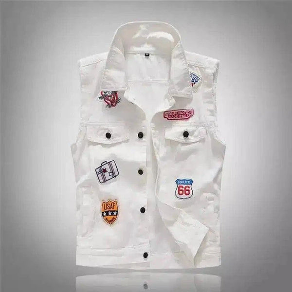 白色牛仔马甲 牛仔马甲 个性化补丁牛仔马甲