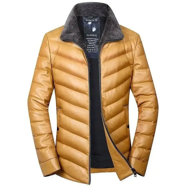 羊毛领青年男式皮羽绒服短款保暖羽绒服