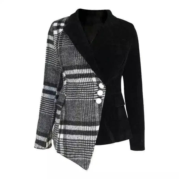 女士格子不对称钮扣西装外套