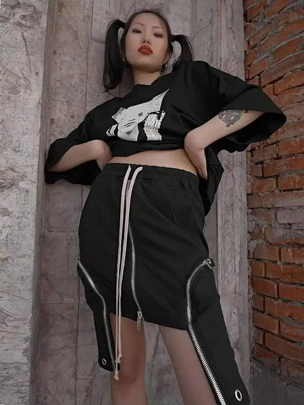 针织双口袋拉链短裙