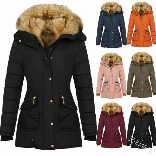 领口/肩部款式:连帽,带人造皮草饰边 - 袖长:长袖