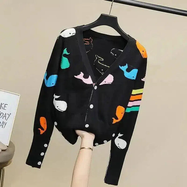 - 服装类型:开襟羊毛衫 袖长:长袖领口:V 领版型:常规版型,纽扣开合设计:采用俏皮的多色猫咪印花和对比鲜明的白色圆点。