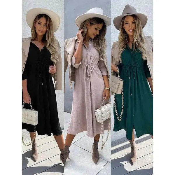 - 服装类型:连衣裙 设计特点:腰部系带细节袖子款式:长袖领口: V领V 领
