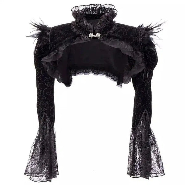 领口或肩部样式:带羽毛饰边的高蕾丝领 - 合身或弹力:结构合身,无明显弹力