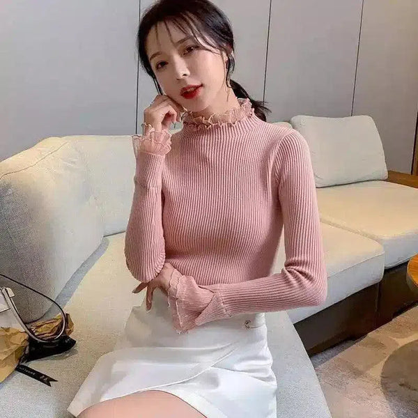 女式罗纹针织荷叶领毛衣