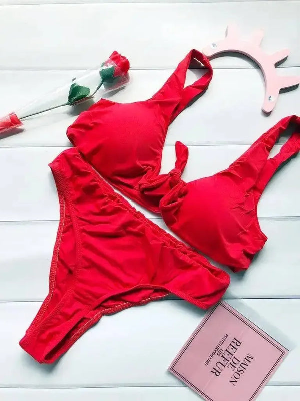 设计:时尚系带比基尼套装类型:适合沙滩和泳池的泳装(注:请查看尺码细节,以确保完美合身。