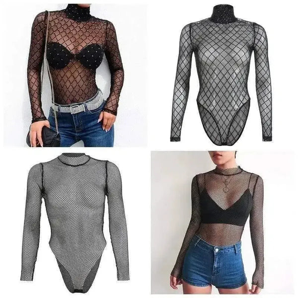 - 服装类型:女式网眼连体服/上衣袖长:长袖领口或肩部款式:高领