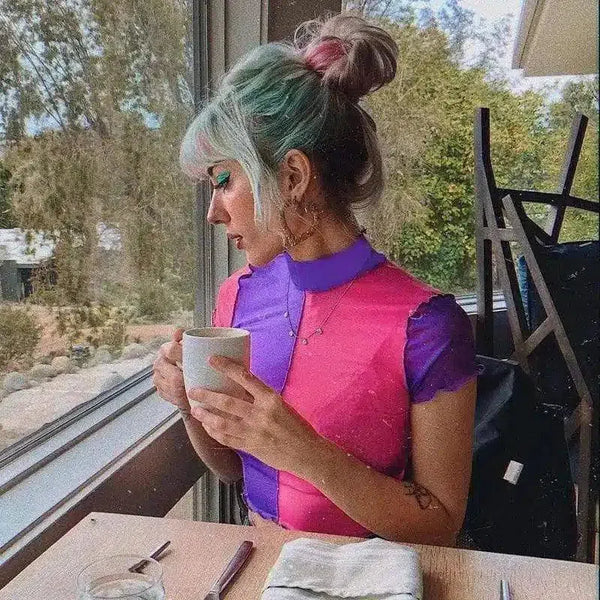 领口:高领 - 版型:修身版型,有明显的接缝细节