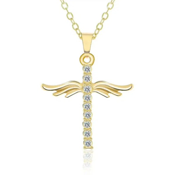- 设计:简洁的十字架吊坠上有设计精巧的天使翅膀