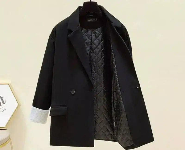 领口或肩部款式:平驳领 - 领口或肩部款式:平驳领 其他细节:单排扣,前襟纽扣开合,胸前有口袋;内衬采用绗缝设计