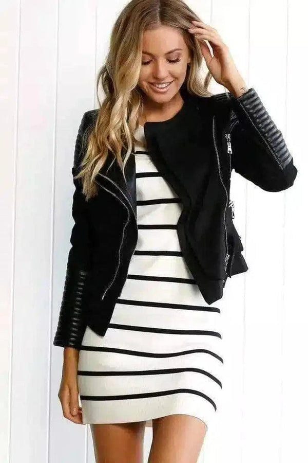 拼接仿皮麂皮绒女式夹克 黑色摩托朋克外套