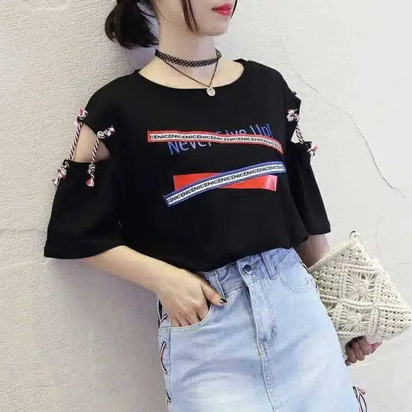 - 服装类型:休闲T恤袖长:短袖,镂空细节