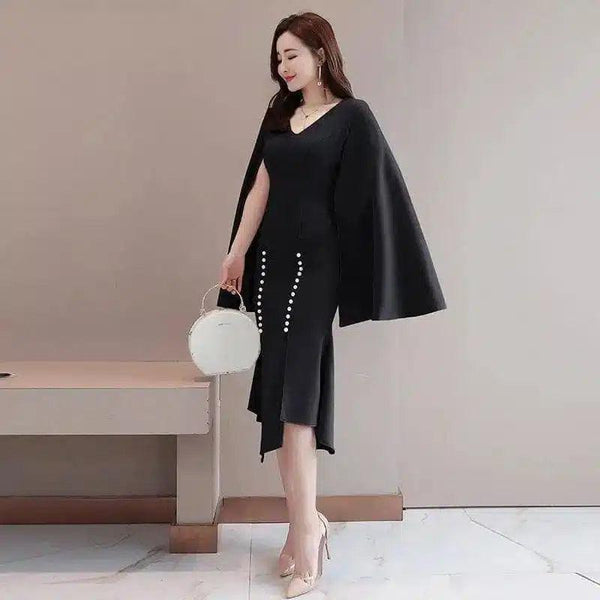 - 服装类型:女士连衣裙,带不对称斗篷细节