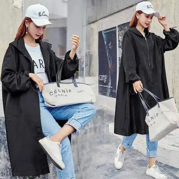 女式连帽休闲长风衣