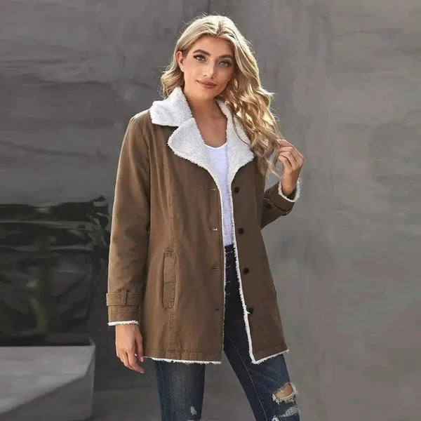 天鹅绒大衣 女式跨界中长款翻领棉质