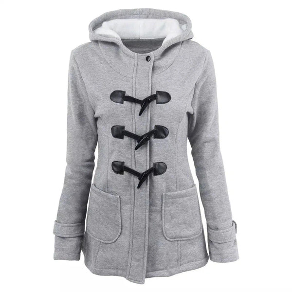 冬季保暖毛领夹克 女式新款牛角扣长款