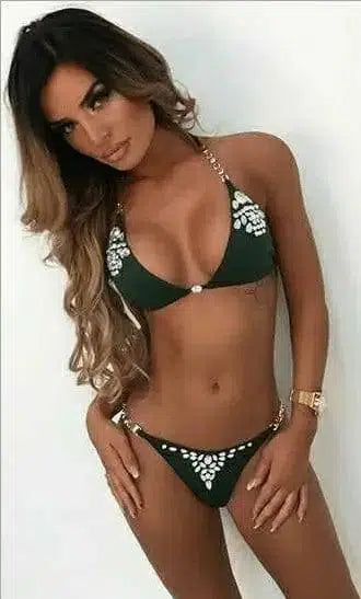 服装类型:比基尼套装设计:闪光和水钻点缀材质:柔软舒适的面料