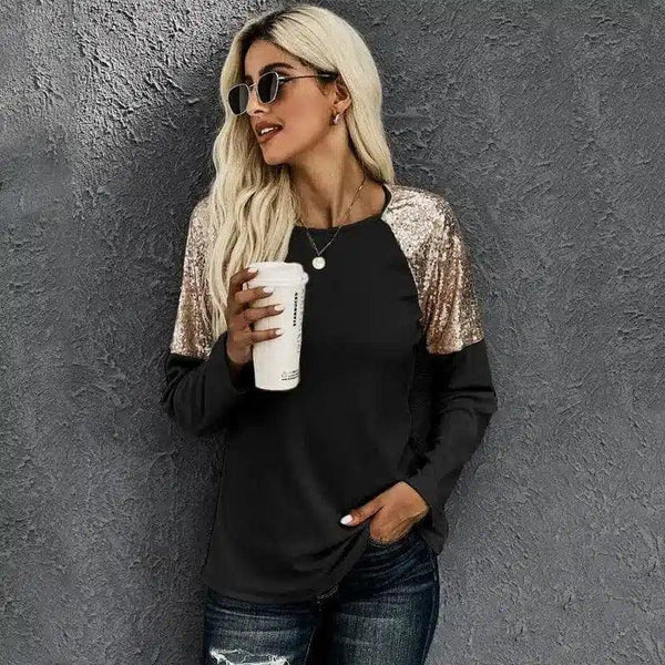女士长袖亮片肩上衣