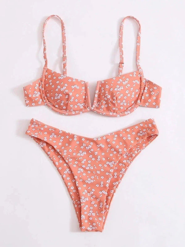 类型:比基尼泳装设计:小碎花图案护理说明: 建议手洗