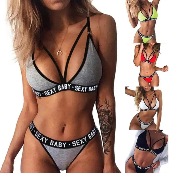 款式:时尚比基尼,醒目字母印花场合:海滩日、泳池派对或日光浴的理想选择