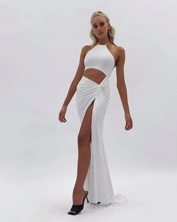 - 服装类型:长裙 设计: 带镂空细节的露肩领